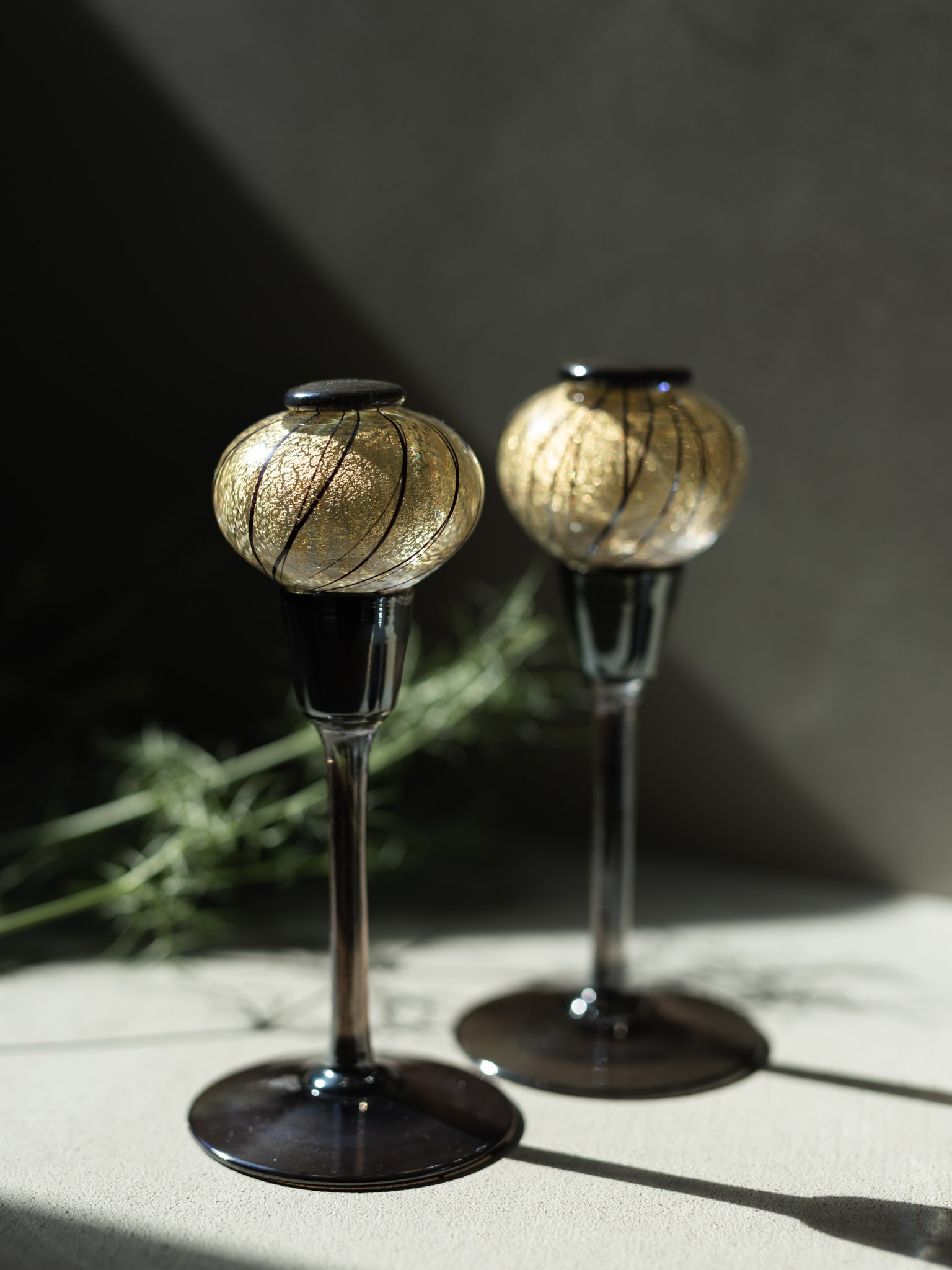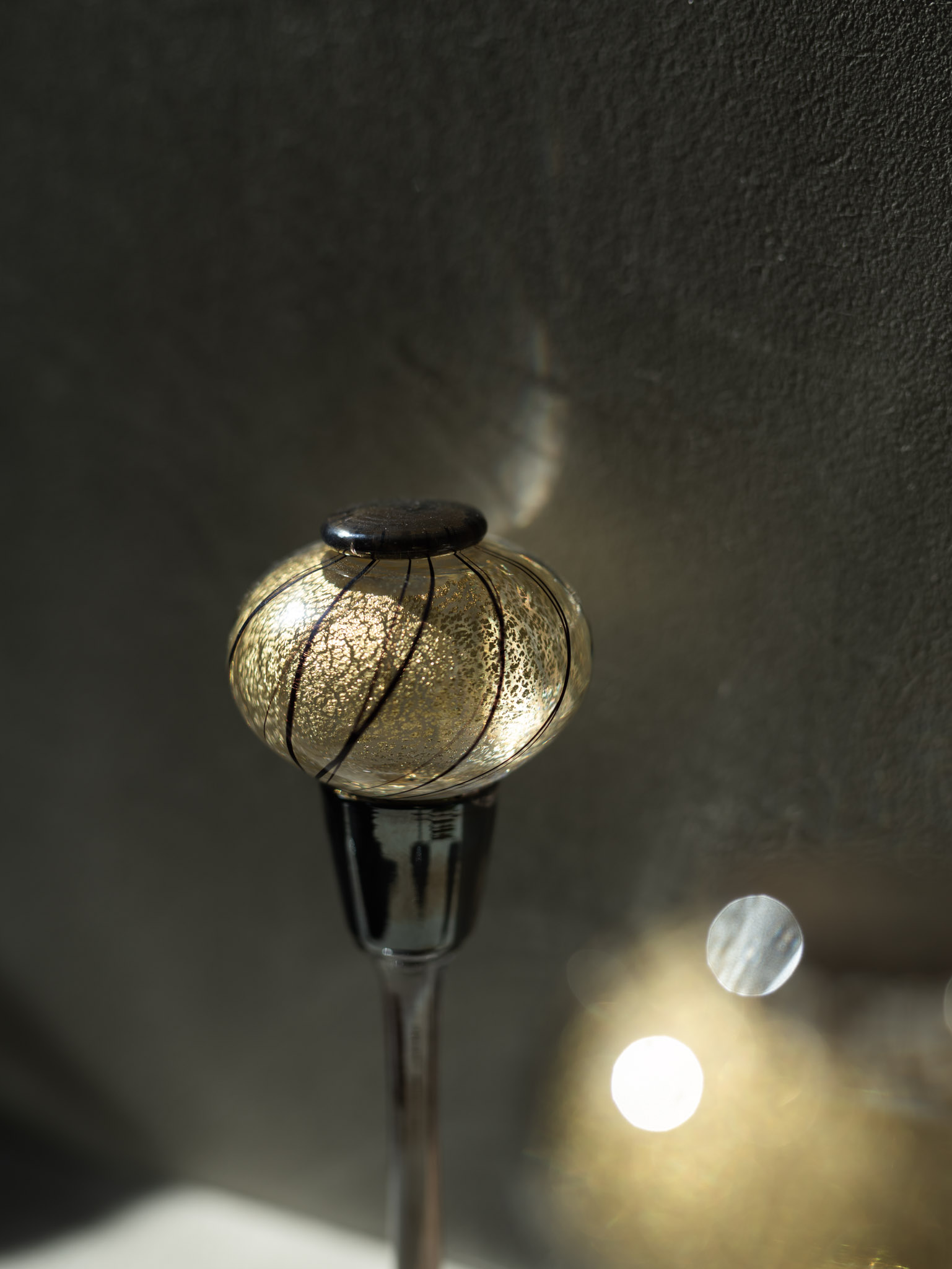 灯りを思わせる柔らかな丸みと、ガラスの中にそっと閉じ込めた金箔のきらめきが、凛とした美しさを生み出します。素材には、光の屈折が際立つガラスを使用。白磁との組み合わせにより、現代の住空間に自然に馴染み、静謐な世界が生まれます。